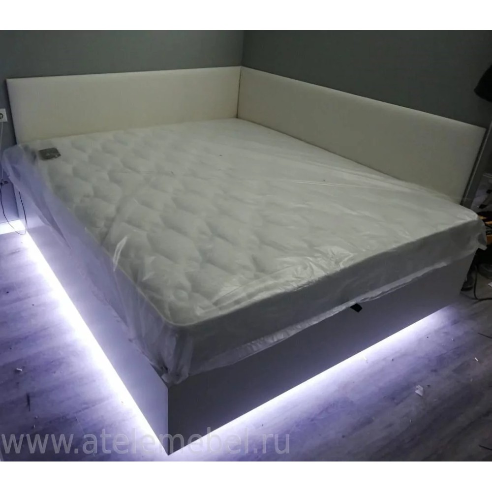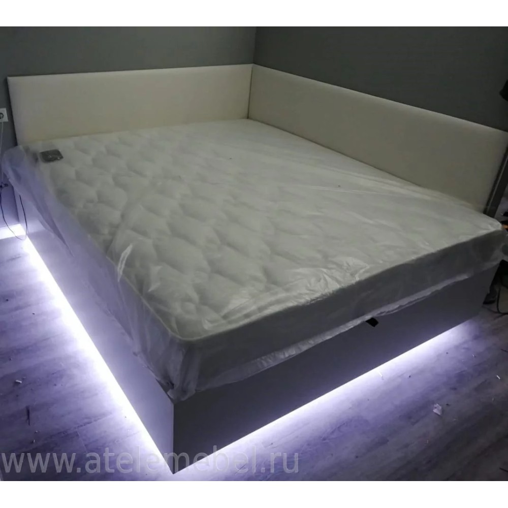 - Кровать в спальню на подиуме с подсветкой
